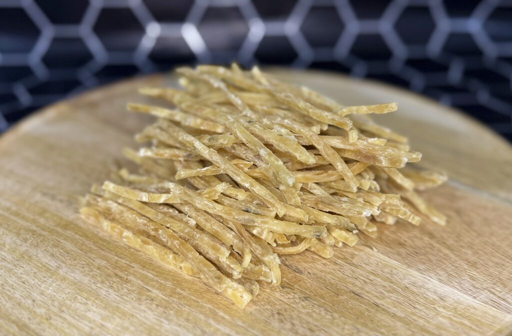Дрібна морська риба з родини анчоусових, відома своїм насиченим смаком.У сушеному вигляді має виразну солоність, глибокий рибний аромат і щільну, злегка хрустку текстуру.Ідеальна закуска для тих, хто любить яскраві морські смаки та класичні рибні снеки.