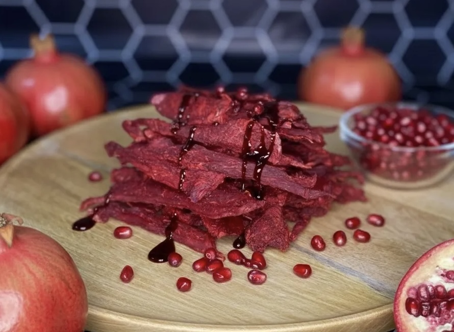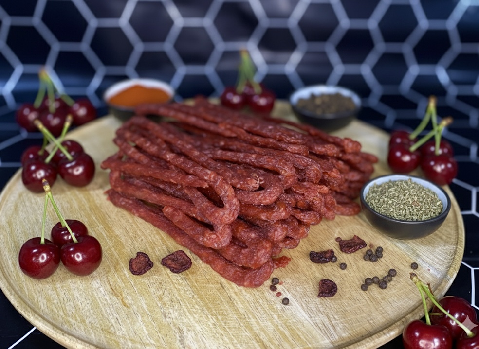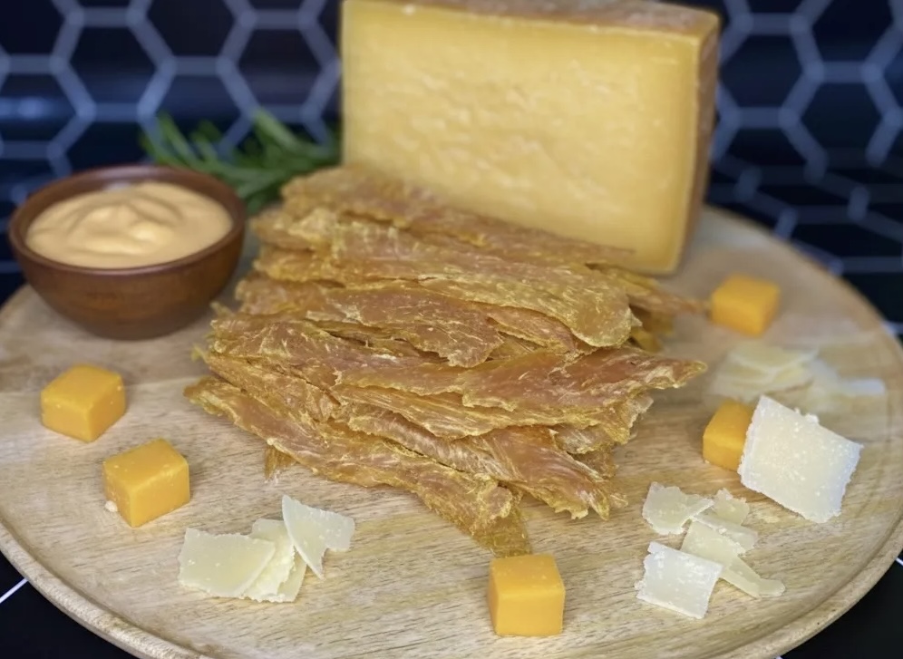 Апетитні шматочки курки з вираженим сирним смаком.Першим відчувається ніжна солоність розтопленого сиру, потім — м’якість курки з ледь помітною вершковою ноткою.Смак нагадує улюблені сирні нагетси, тільки в сушеному форматі — ситно, ароматно й по-справжньому смачно.